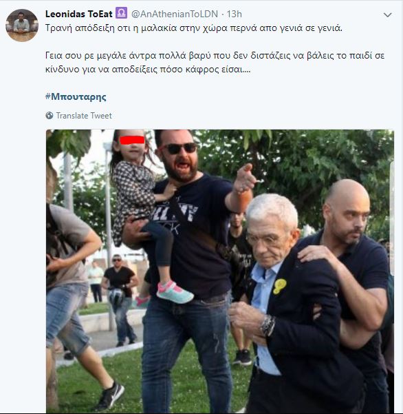 Σε ανάρτηση του ο βουλευτής της Χρυσής Αυγής Χρήστος Παππάς πάνω από βίντεο στον προσωπικό του λογαριασμό αποκαλεί «τουρκολάγνο» και «ενθέλληνα» τον Γ. Μπουτάρη. Σε άλλη ανάρτηση του μάλιστα, σε φωτογραφία που δείχνει τον δήμαρχο στο πάτωμα, αφού τον έχουν χτυπήσει, γράφει: «Έτσι πάντα … η πτώση των τυράννων».