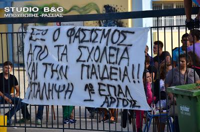 Σε ένδειξη συμπαράστασης στους καθηγητές τους, οι μαθητές του 1ου ΕΠΑΛ Άργους προχώρησαν σήμερα σε κατάληψη του σχολείου τους. Καθηγητές της τοπικής ΕΛΜΕ πραγματοποίησαν συγκέντρωση στο ΕΠΑΛ Δαλαμανάρας.