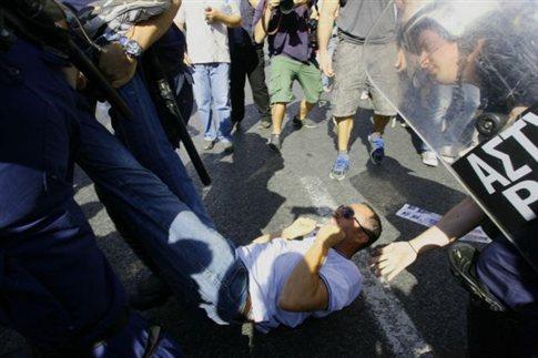ΜΑΤ χτυπούν τη συγκέντρωση των σχολικών φυλάκων