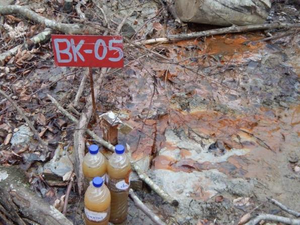 Μέλη του κινήματος ενάντια στην εξόρυξη χρυσού έχουν συλλέξει και πρόκειται να αποστείλουν δείγματα του νερού που απεικονίζεται στις παρακάτω φωτογραφίες για εργαστηριακό έλεγχο.