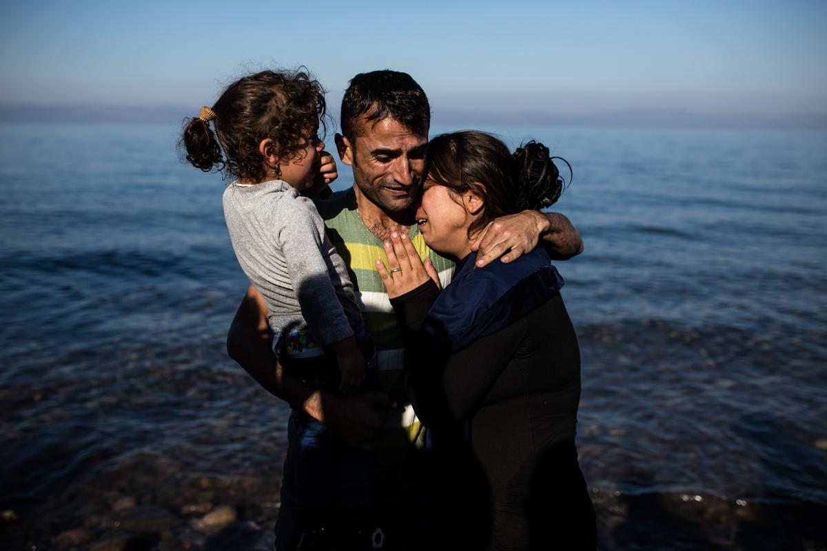 Τρεις ηλικιωμένες ταϊζουν το μωρό ενός πρόσφυγα στη Λέσβο / Lefteris Partsalis
