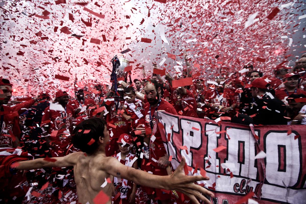 Η ομάδα μπάσκετ του Ολυμπιακού κερδίζει το πρωτάθλημα επί του Παναθηναϊκού στο ΣΕΦ / Andreas Papakonstantinou