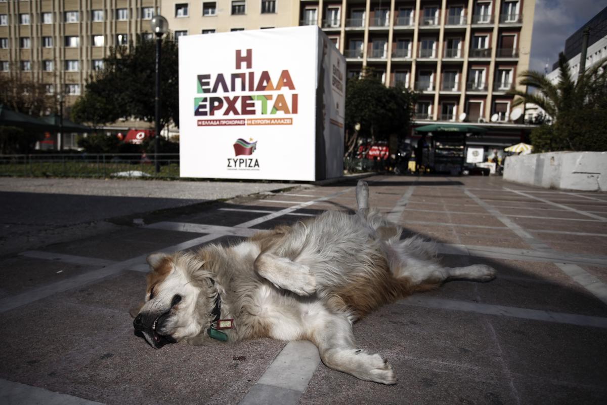 Αδέσποτος σκύλος ξαπλωμένος στην Πλατεία Κλαυθμώνος / Menelaos Myrillas