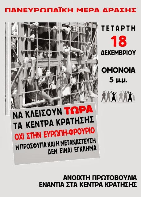 Στόχος μας είναι να ανοίξουμε με κάθε τρόπο και με ποικίλες παρεμβάσεις το ζήτημα των κέντρων κράτησης στην ελληνική κοινωνία, με διαμαρτυρίες σε αστυνομικά τμήματα (όπως στην Ομόνοια), σε στρατόπεδα (όπως στην Αμυγδαλέζα και την Κόρινθο), θεσμικές κινήσεις και διαδικτυακή ενημέρωση. Ταυτόχρονα πρώτος στόχος μας είναι η μεγάλη διαδήλωση στις 18 Δεκέμβρη στο κέντρο της Αθήνας για τη μέρα του μετανάστη. Να γίνει αυτή η μέρα μία αποφασιστική καταδίκη για την κυβερνητική πολιτική στο μεταναστευτικό και να διεκδικήσουμε μαζί με τους μετανάστες τα αυτονόητα.