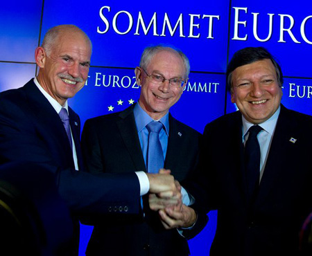 Ύστερα από ένα κρίσιμο γεύμα μεταξύ των δυο ηγετών του ευρωπαϊκού κέντρου (Μέρκελ - Σαρκοζί) και με τη συμμετοχή ενός τραπεζίτη αμφίβολης δημοκρατικής νομιμοποίησης (Ζαν Κλοντ Τρισέ) η Ευρωζώνη δείχνει έτοιμη να παρουσιάσει το επόμενο σχέδιο για το μέλλον της Ευρωπαϊκής περιφέρειας.