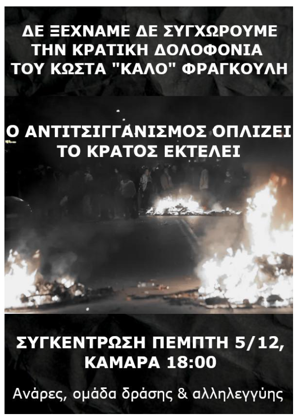 ΔΕΝ ΞΕΧΝΑΜΕ ΔΕΝ ΣΥΓΧΩΡΟΥΜΕ ΤΗΝ ΚΡΑΤΙΚΗ ΔΟΛΟΦΟΝΙΑ ΤΟΥ ΚΩΣΤΑ “ΚΑΛΟ” ΦΡΑΓΚΟΥΛΗ