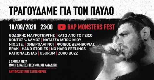 Η συναυλία θα προβληθεί online την Παρασκεύη 18/9 στις 23:00 στο youtube κανάλι Rap Monsters Fest.