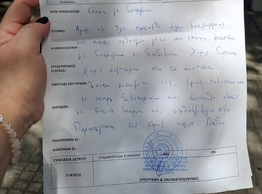 Συγκεκριμένα, ένα επτάχρονο παιδί μεταφέρθηκε από τους γονείς του αρχικά στο Κέντρο Υγείας στην Αλεξάνδρας, αφού αισθάνονταν κάψιμο στα μάτια. Οι γιατροί, παρότι δε διαπίστωσαν δύσπνοια, επικοινώνησαν για οδηγίες με το κέντρο δηλητηριάσεων το οποίο συνέστησε να γίνουν πλύσεις και οφθαλμολογική εξέταση. Στη συνέχειατο παιδί παραπέμφθηκε στο νοσοκομείο Παίδων.