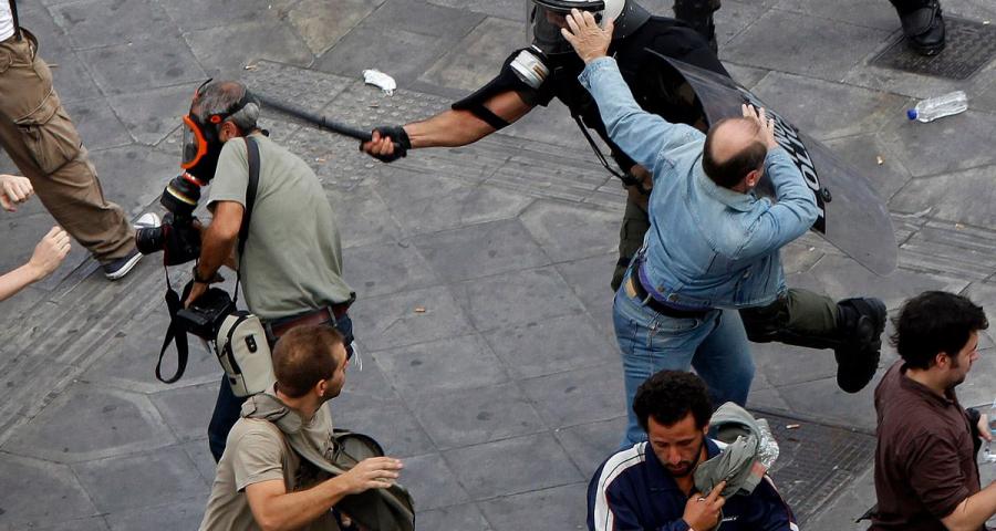 Όπως σημειώνουν συγκεκριμένα για την Ελλάδα οι RWB, συνεχίζεται η αστυνομική βία εναντίον δημοσιογράφων κατά τη διάρκεια διαδηλώσεων. Ως εξαιρετικά αρνητικό αναφέρεται το γεγονός ότι πολλές έρευνες για τέτοιες επιθέσεις κατέληξαν στο αρχείο χωρίς να υπάρξουν κυρώσεις για τους δράστες, κάτι που ενισχύει την επικρατούσα ατιμωρησία. Χαρακτηριστικά παραδείγματα είναι οι επιθέσεις στους φωτορεπόρτερ Μάριο Λώλο και Μανώλη Κυπραίο.