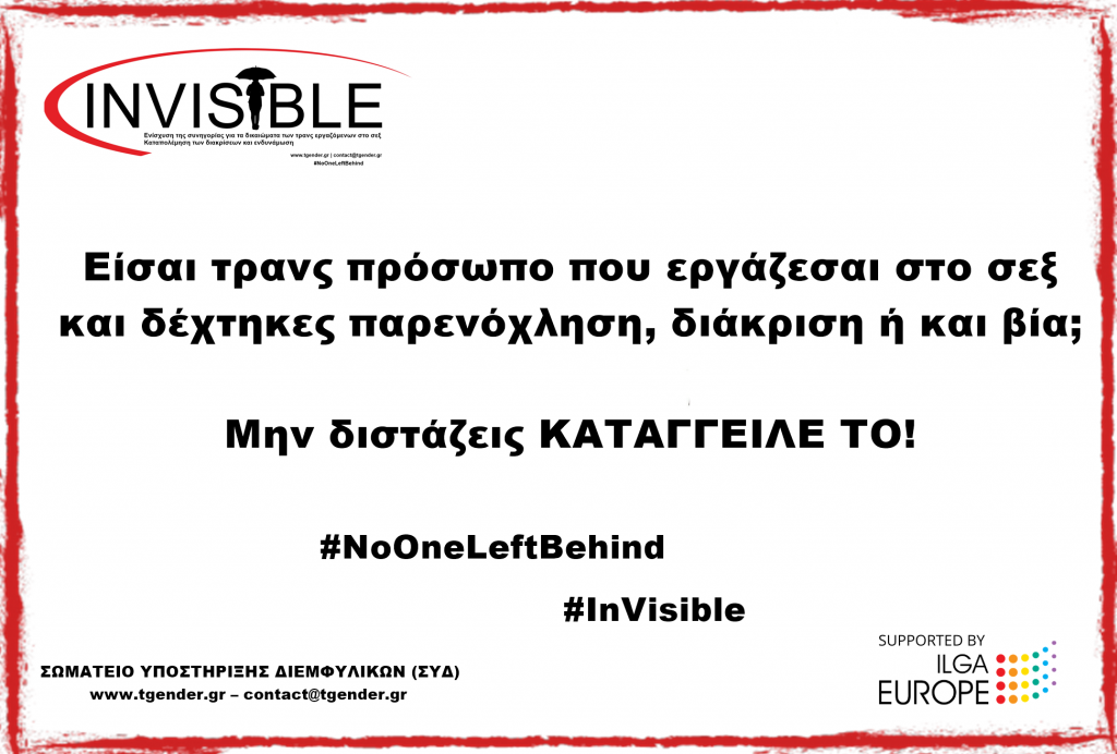 Από την αρχή της πανδημίας του COVID-19 στη χώρα μας, στο Σωματείο Υποστήριξης Διεμφυλικών (ΣΥΔ) και στην online πλατφόρμα καταγραφής περιστατικών ρατσιστικής βίας «Κατάγγειλέ το», καταγράφονται συχνά περιστατικά παραβιάσεων της ιδιωτικότητας και βίαιων επιθέσεων κατά τρανς και ΛΟΑΤΙ προσώπων.