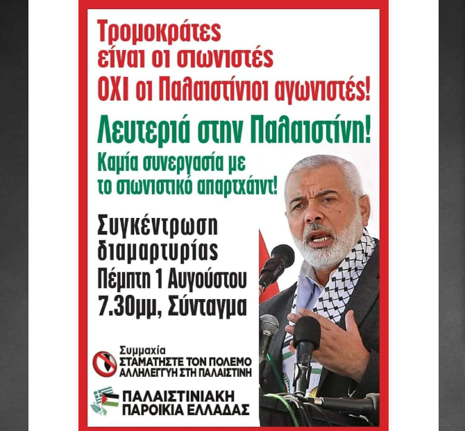 H ΑΝΤΑΡΣΥΑ για τη δολοφονία του ηγέτη της Χαμάς Ισμαήλ Χανίγιε