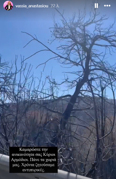 H Bάσια Αναστασίου καταγράφει τις στάχτες που άφησε πίσω της η πυρκαγιά, επισημαίνοντας πως το ΠΑΣΟΚ φώναζε και ζητούσε αντιπυρικές ζώνες.