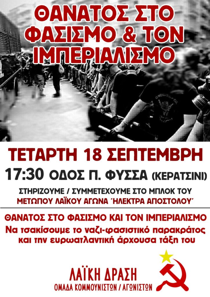 Η Λαϊκή Δράση – Ομάδα Κομμουνιστών/Αγωνιστών αναφέρει στο κάλεσμά της: