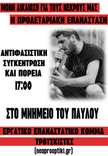 Η μάχη ενάντια στο φασισμό μπορεί να είναι νικηφόρα μόνο με έναν συνδυασμένο μαχητικό και μαζικό αντιφασισμό, με εργατικές πολιτοφυλακές, και ένα επαναστατικό πολιτικό κίνημα που αντιμάχεται την καπιταλιστική εξουσία παλεύοντας για την ανατροπή της κυβέρνησης Μητσοτάκη, την συντριβή των κρατικών μηχανισμών που εκτρέφουν, προστατεύουν και προωθούν τους φασίστες δολοφόνους, για την εργατική εξουσία και το σοσιαλισμό.