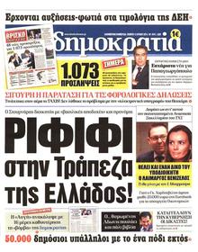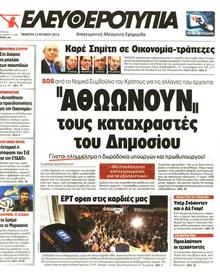 ELEFTHEROTYPIAAbsolution for abusers of the state! An SOS from the Legal Council of State over the changes that are coming Bribery of ministers and the prime minister will be made a misdemeanour! The ‘predators’ of the arms procurement scandal and others convicted of financial scandals will be let off the hook by the planned elimination by the Ministry of Justice of the law regarding abusers of the state. That is what the Legal Council of the State stressed, noting that the new penal code which has been posted on the internet “makes a clear effort to reduce the sentences linked with the protection of public wealth.” And this because the danger is clear that a large number of public servants accused and convicted of financial wrongdoing will have their cases written off. Law 1609 was adopted in 1950 and only in the last few months ‘brought in’ to public coffers 40 million euros returned by those accused or convicted of crimes. |
