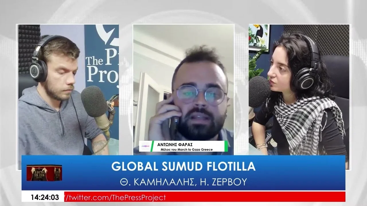 «Εμείς δεν κάναμε αυτήν την πρωτοβουλία τρέφοντας αυταπάτες, ότι θα φτάσουν όλα τα πλοία στον προορισμό τους και κυρίως δεν περιμέναμε ευγένειες από το Ισραήλ. Γνωρίζουμε ότι το Ισραήλ εξαθλιώνει, εξοντώνει επί δεκαετίες έναν λαό, λιμοκτονεί και γενοκτονεί 2 εκατ. ανθρώπους στη Γάζα, δολοφονεί δημοσιογράφους, επιτίθεται σε νοσοκομεία, επιτίθεται σε ό,τι αντιστέκεται σε αυτήν την άδικη παράνομη και ρατσιστική πολιτική που εφαρμόζει στην Παλαιστίνη. Γνωρίζαμε ότι πιθανότητα η αποστολή θα γίνει στόχος, έγινε στόχος, έχουμε πέρα από την απαγωγή των ανθρώπων σε διεθνή ύδατα, 11 επιβεβαιωμένες επιθέσεις, δύο στην Τυνησία και άλλες 9 όταν ο στόλος έπλεε στα ανοικτά της Κρήτη» τόνισε και συνέχισε λέγοντας ότι «με κάθε σεβασμό στους συντρόφους και τις συντρόφισσες που μεταγάγονται στα κρατητήρια του Ισραήλ, γνωρίζοντας ότι κατά πάσα πιθανότητα θα συμφωνήσουν μαζί μου, νιώθουμε ότι άξιζε κάθε ρίσκο.