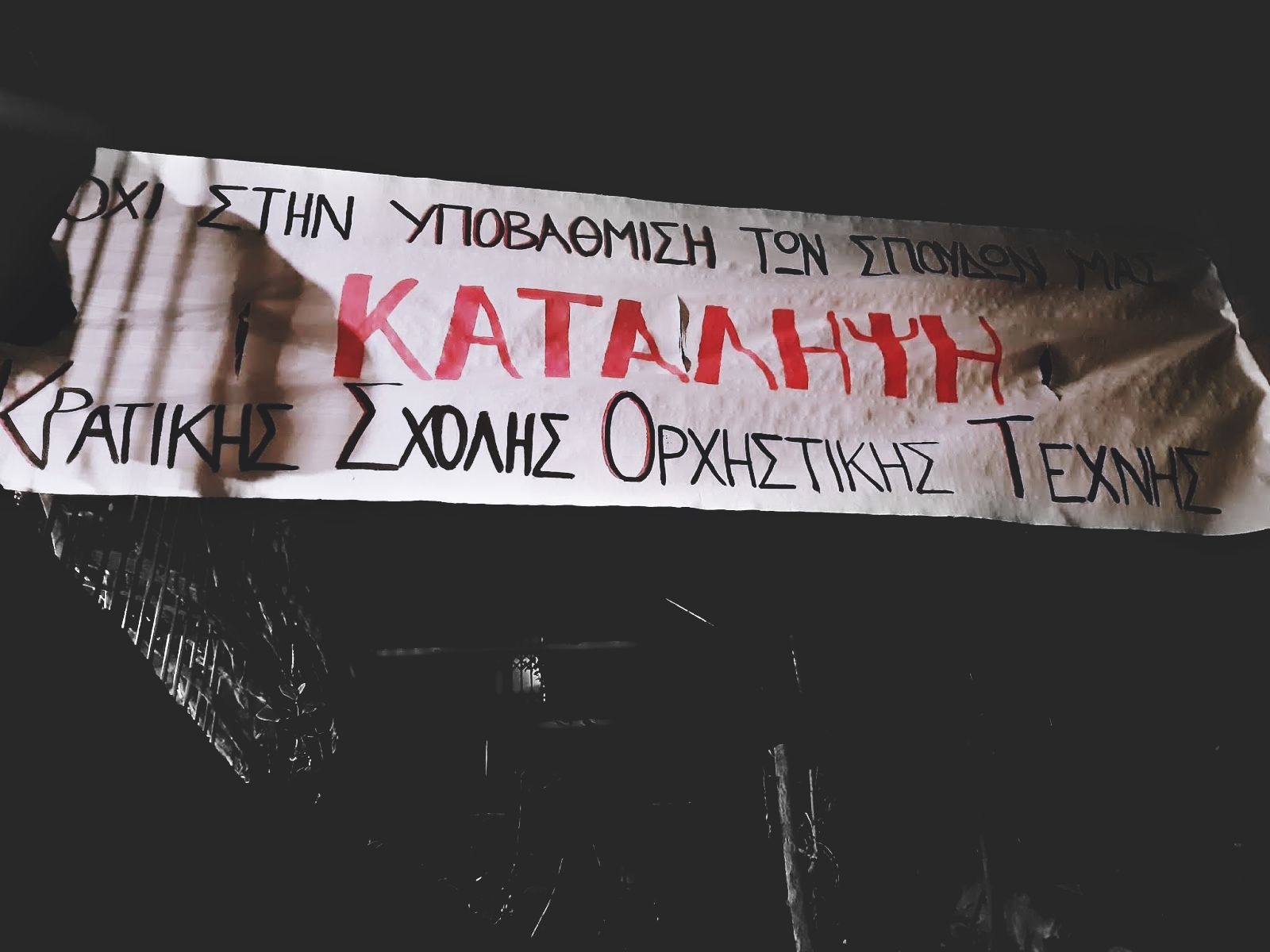 Στις 08/01/2020 ο φοιτητικός σύλλογος της Κρατικής Σχολής Ορχηστικής Τέχνης προέβη σε κατάληψη του κτηρίου της σχολής στην οδό Ομήρου 55-57. Ανυπαρξία σταθερού διδακτικού προσωπικού, υποχρηματοδότηση και σοβαρές ελλείψεις σε κατάλληλες και ασφαλείς κτιριακές υποδομές είναι μερικά απ’ όσα καταγγέλλουν οι σπουδαστές που βιώνουν κλιμακούμενη υποβάθμιση των σπουδών τους από την πρώτη στιγμή του φετινού ακαδημαϊκού έτους με την καθυστερημένη έναρξη των μαθημάτων τους κατά δύο μήνες.