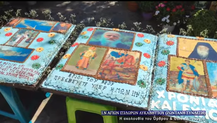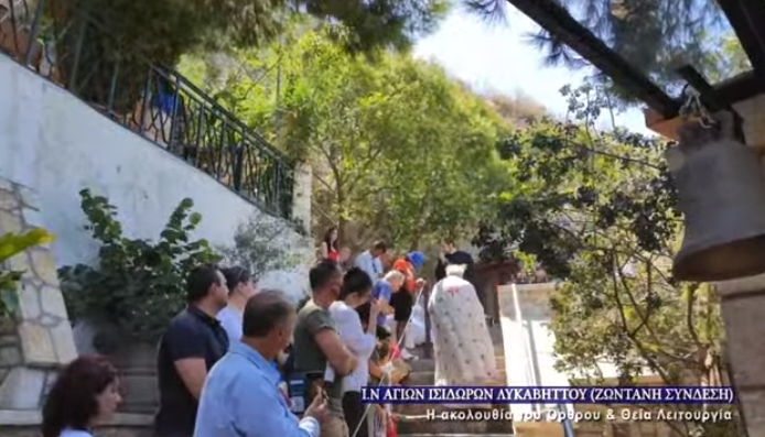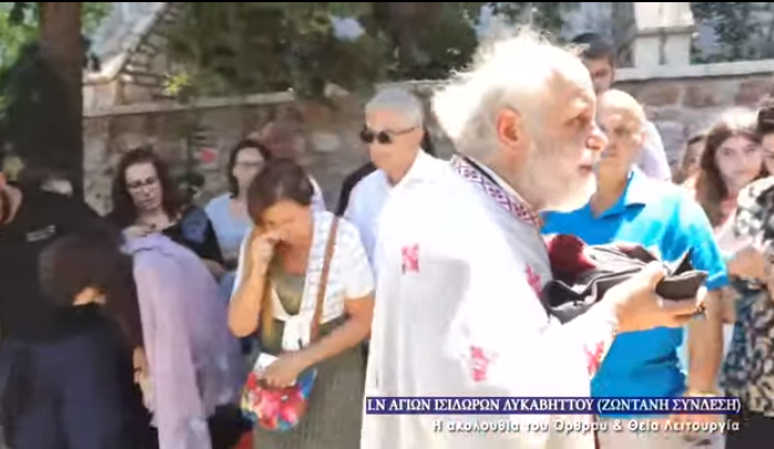 Η Θεία Λειτουργία μεταδίδεται ζωντανά μέσω της σελίδας των Αγίων Ισιδώρων στο διαδίκτυο, με πολλές κάμερες που βρίσκονται μέσα κι έξω από τον Ναό. Ρωτήσαμε τι γίνεται στο εκκλησάκι. «Θαύματα» μας έλεγαν όσοι παρακολουθούσαν τη λειτουργία. Μια κυρία μας πλησίασε -από μόνη της- να μας πει πως χάρη σε θαύμα περπατάει. «Είχα ένα ατύχημα, τροχαίο. Ακρωτηριάστηκαν τα πόδια μου. Προσευχήθηκα, έκανα τρία χειρουργεία και πέτυχαν. Με το που πήγα στο ΚΑΤ μου είπαν πως έπεσα πάνω στην καλύτερη μέρα που χειρουργούσε ο καλύτερος γιατρός. Δεν ήταν τυχαίο…». Γενικά, από εγκάρδιους χαιρετισμούς, καταλάβαμε ότι πολλοί γνωρίζονται και πάνε συχνά στην εκκλησία, κι όσο για τις …νέες φάτσες, κάποιοι παλιότεροι φροντίζουν να τις πλησιάζουν… Πολλοί μας έπιασαν προτείνοντας μας να προσκυνήσουμε κάποιες εικόνες. «Εκεί είναι η Παναγία», «εκεί πήγατε; Είναι ο ξύλινος σταυρός και μία πέτρα από τα Ιεροσόλυμα», εκεί το ένα, εκεί το άλλο… Κι όλοι σε προέτρεπαν να πας σε μια γωνιά, όπου αφήνουν οι πάσχοντες τις πατερίτσες, τους νάρθηκες και τα μπαστούνια τους. Κι ήταν απίστευτο πόσα υπήρχαν. Κι ο ιερέας να βγάζει λόγο για κάποιον γυναικολόγο που σταύρωνε τις γυναίκες πελάτισσες μ’ έναν σταυρό και γίνονταν καλά…