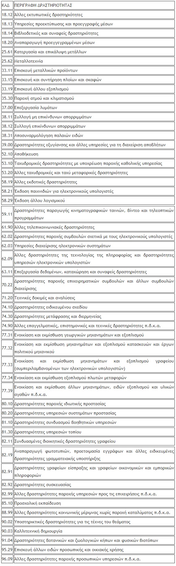 Συγκεκριμένα ο κατάλογος με τις 53 δραστηριότητες που έχουν πλέον τις παραπάνω υποχρεώσεις έχει αναλυτικά ως εξής (καταγράφονται και οι Κωδικοί Αριθμοί Δραστηριότητας-ΚΑΔ), όπως δημοσιεύτηκε στο Taxheaven.gr: