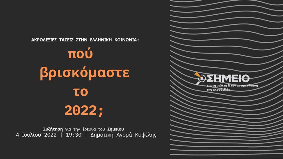 Tο «Σημείο για την Μελέτη και την Αντιμετώπιση της Ακροδεξιάς» καλεί σε συζήτηση σχετικά με τις ακροδεξιές τάσεις που παρατηρούνται στην ελληνική κοινωνία αύριο, 4 Ιουλίου, στις 19:30 στην Δημοτική Αγορά Κυψέλης.