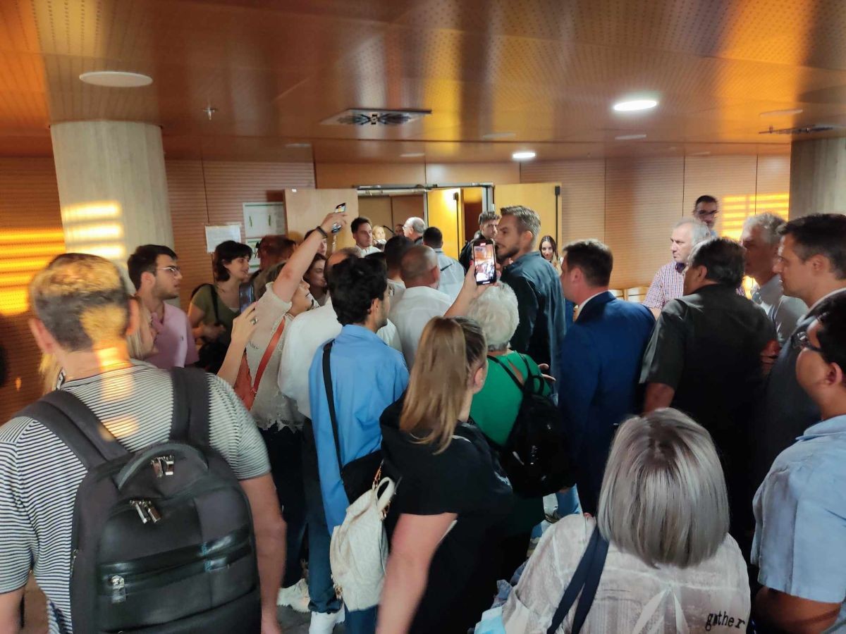 Οι δηλώσεις αυτές εξόργισαν τον κ. Ζιαμπάζη και περίπου ακόμη 40 άτομα, προπηλακίζοντας τον πρώτο και τους συνεργάτες του, αλλά και τη Μαρία Κέκη, την υποψήφια δήμαρχο με τον συνδυασμό «Πόλη Ανάποδα». Ακολούθησε ο αποκλεισμός τους στην αίθουσα του Δ.Σ. από τους υποστηρικτές των «Ενωμένων Μακεδόνων», με τα μέλη της Ένωσης Συντακτών Μακεδονίας-Θράκης (ΕΣΗΕΜΘ), Γιάννη Κοτσυφό και άλλους να δρουν πυροσβεστικά και να τους χωρίζουν.