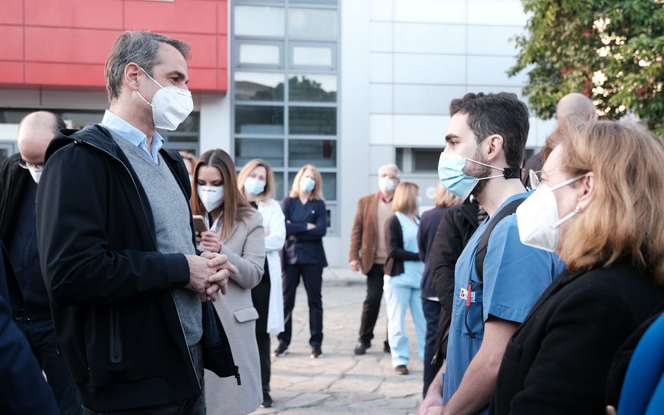 «Ολόκληρη η ελληνική κοινωνία στέκεται με σεβασμό απέναντι στο ιατρικό και νοσηλευτικό προσωπικό. Το εθνικό σύστημα υγείας πιέζεται, αντέχει όμως και θα αντέχει και θα έχει την αμέριστη στήριξη της πολιτείας και την αμέριστη προσωπική μου φροντίδα. Ένα μεγάλο ευχαριστώ, εσείς στέλνετε το μήνυμα ότι μέσα από αυτή τη μεγάλη κρίση, πρέπει όλοι να προσέχουμε, έχουμε τις πρώτες ενθαρρυντικές ενδείξεις ότι αρχίζει κάπως να μειώνεται το ιικό φορτίο ειδικά εδώ στη Βόρεια Ελλάδα, αλλά πιστεύω ότι όλοι οι συμπολίτες μας θα καταλάβουν ότι προς ένδειξη σεβασμού σε εσάς που δίνεται αυτόν τον αγώνα, πρέπει όλοι να προσέξουμε για να περάσουμε στην άλλη όχθη του ποταμού με όσο το δυνατόν λιγότερες απώλειες», υποστήριξε ο πρωθυπουργός.