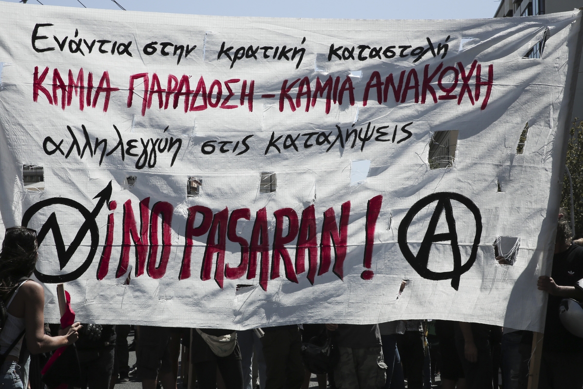 Σύμφωνα με μαρτυρίες, φωτογραφίες και βίντεο που κυκλοφόρησαν στα μέσα κοινωνικής δικτύωσης μία ομάδα ατόμων εισήλθε στο κτήριο και κρέμασε ένα μεγάλο πανό που γράφει «No Pasaran», το οποίο ήταν και το κεντρικό σύνθημα της μεγάλης κινητοποίησης του περασμένου Σαββάτου ενάντια στην καταστολή και την αστυνομική βία στα Εξάρχεια.