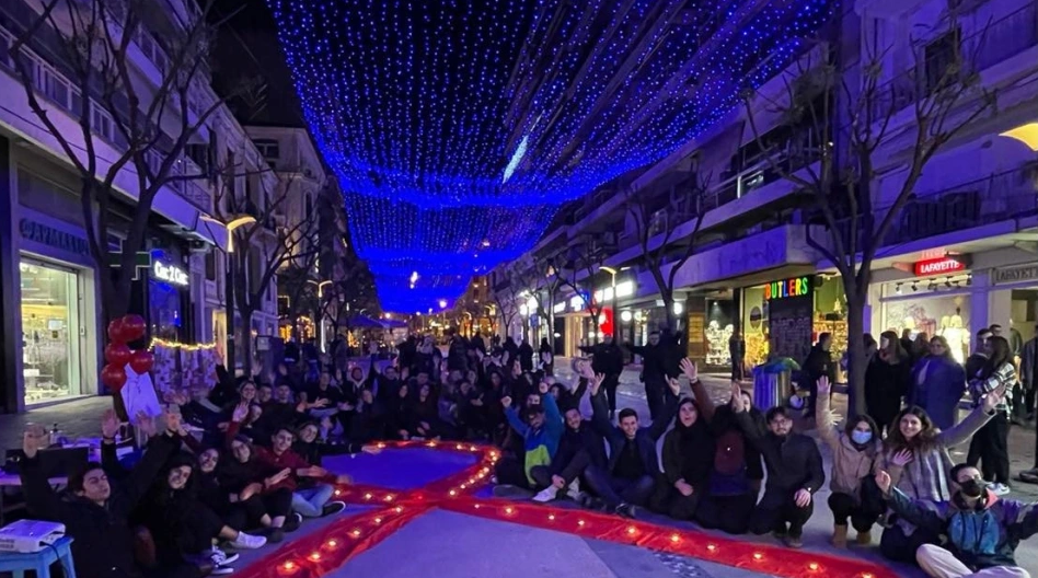 Την κορδέλα (red ribbon) σύμβολο της επίγνωσης και της επαγρύπνησης για το AIDS σχημάτισαν με κόκκινα κεριά το βράδυ της Τετάρτης στον πεζόδρομο της Αγίας Σοφίας, στη Θεσσαλονίκη, με αφορμή την Παγκόσμια Ημέρα AIDS.