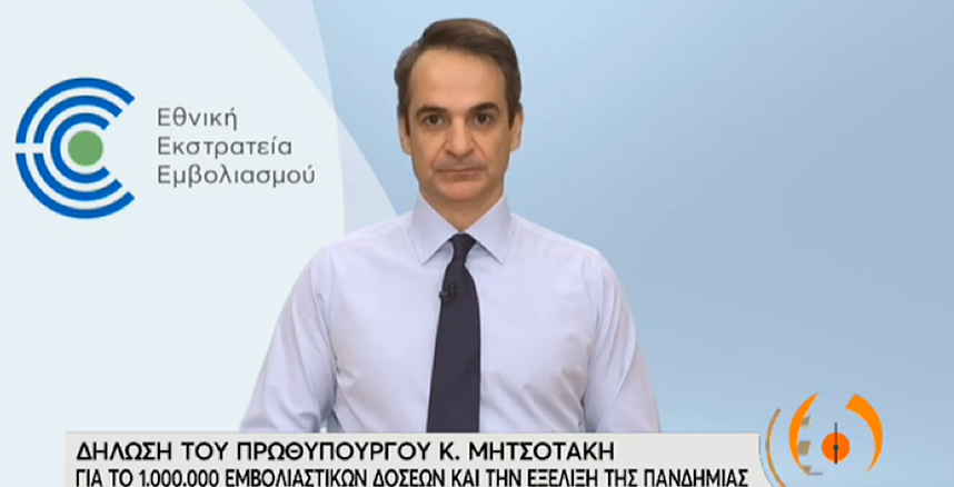 Σήμερα, ξεπερνάμε τον συμβολικό αριθμό των 1.000.000 δόσεων. Που σημαίνει ότι κάθε εβδομάδα που περνά, χτίζουμε το τείχος ανοσίας που θα μας επιτρέψει να αφήσουμε πίσω αυτή την περιπέτεια. Από τον Απρίλιο, μάλιστα, θα έχουμε πολύ περισσότερες δόσεις στη διάθεσή μας. Και όσο ο καιρός βελτιώνεται, θα γίνεται σύμμαχος μας», αναφέρει στη δήλωσή του ο κ. Μητσοτάκης.