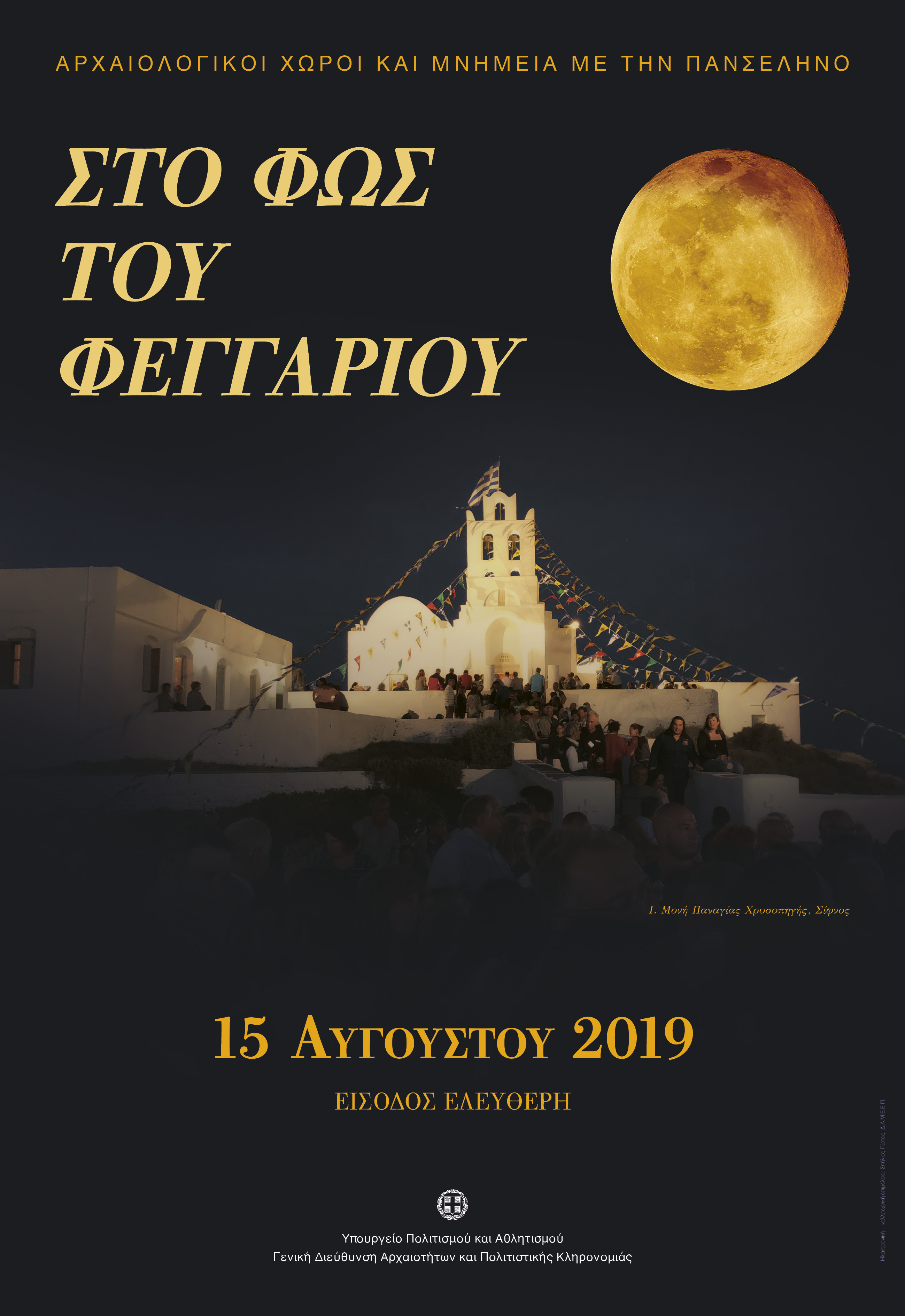 Το Υπουργείο Πολιτισμού και Αθλητισμού διοργανώνει από το 2002 με επιτυχία τις εκδηλώσεις της Αυγουστιάτικης Πανσελήνου προσφέροντας τους αρχαιολογικούς χώρους και τα μνημεία στο κοινό σε μια καλοκαιρινή βραδιά κάτω από το φως του αυγουστιάτικου φεγγαριού.