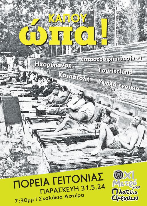 «Αγώνας για την υπεράσπιση της γειτονιάς των Εξαρχείων σημαίνει αγώνας για ζωή», επισημαίνεται στο κάλεσμα της πορείας.