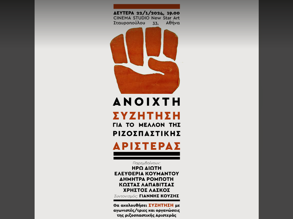 Οι υπογράφοντες/ουσες έχουμε στόχο να συμβάλλουμε στην έναρξη αυτής της συζήτησης. Σας καλούμε στην ανοιχτή συζήτηση που θα γίνει στις 22 Ιανουαρίου, ώρα 19.00, στον Κινηματογράφο STUDIO new star art cinema.