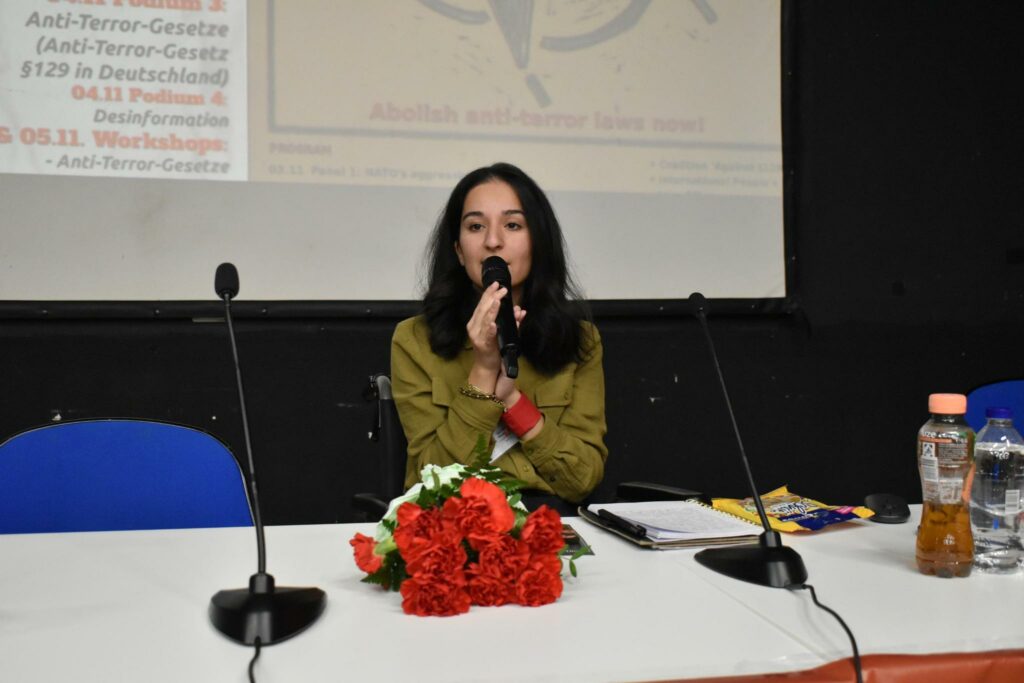 «Η καταστολή κατά των επαναστατών από την Τουρκία και το Κουρδιστάν έχει αυξηθεί πολύ. Υπάρχουν περισσότεροι από 20 κρατούμενοι. Παρόλο που δεν κατηγορούνται για ούτε μία πράξη βίας, συλλαμβάνονται με 129/β και ζουν σε απομόνωση για χρόνια» ανέφερε ο δικηγόρος Γενέρ Σοζέν, κατά τη συζήτηση για τους πολιτικούς κρατουμένους, προσθέτοντας ότι δεν έχουν υπάρξει τόσοι πολλοί πολιτικοί κρατούμενοι στη Γερμανία εδώ και πολλά χρόνια. «Οι συνεδριάσεις και η αλληλογραφία των δικηγόρων υπόκεινται σε ειδικές διαδικασίες. Αυτό τους δυσκολεύει ακόμη και να προετοιμάσουν την υπεράσπισή τους. Παρά την έκτιση των δύο τρίτων της συνολικής ποινής τους, δεν τους επιτρέπεται η αποφυλάκιση λόγω των πολιτικών τους πεποιθήσεων. Τους αρνούνται δικαιώματα όπως το άσυλο. Στο πλαίσιο αυτό, 3 επαναστάτες από την Τουρκία δικάζονται στο Ντίσελντορφ. Η κατάσταση της υγείας ενός από τους κρατούμενους, του Ιχσάν Τσιμπελίκ, απειλείται σοβαρά. Οι εξετάσεις, όπως οι βιοψίες, έχουν αναβληθεί και υπάρχει μεγάλη αμέλεια. Δεν του έδωσαν καν τα προσωπικά του αντικείμενα και έπρεπε να παλεύουμε γι’ αυτά όλη την ώρα. Αυτό αποτελεί απόδειξη της καταπίεσης των πολιτικών κρατουμένων από το γερμανικό κράτος. Η Γερμανία αυξάνει την πίεσή της σε ολόκληρη την αριστερά, αλλά εξακολουθεί να υπάρχει μια αποσύνδεση μεταξύ της γερμανικής αριστεράς και της αριστεράς στην Τουρκία/Κουρδιστάν» είπε, καταλήγοντας πως «ολόκληρη η αριστερά πρέπει να ενωθεί ενάντια σε αυτές τις καταστολές, επειδή η επίθεση στρέφεται εναντίον ολόκληρης της αριστεράς».