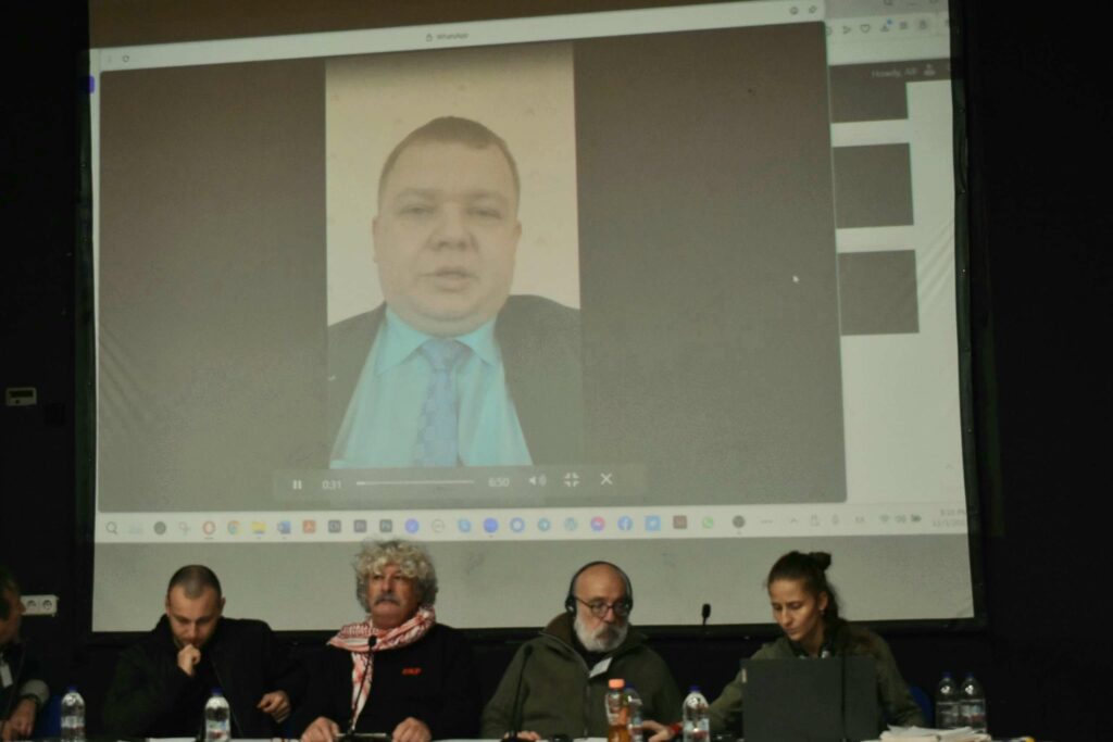 Ο Αλεξέι Άλμπου έστειλε βιντεοσκοπημένο μήνυμα στο συμπόσιο εκ μέρους της ουκρανικής κομμουνιστικής οργάνωσης «Borotba» από την περιοχή του Ντονμπάς. «Τα εδάφη μας έχουν καταστραφεί. Ο ιμπεριαλισμός προσπαθεί να ξεπεράσει τις αντιφάσεις του με τέτοιες επιθέσεις. Αλλά μέρα με τη μέρα γίνεται όλο και πιο αδύναμος. Οι παλιές μέθοδοι του ιμπεριαλισμού δεν λειτουργούν πλέον. Το ιμπεριαλιστικό σύστημα παλεύει με αντιφάσεις που θα το καταστρέψουν» ανέφερε, ξεκαθαρίζοντας πως «αν ο αμερικανικός ιμπεριαλισμός υποστεί μια απόλυτη ήττα σε αυτή την περιοχή, θα έχει ένα ντόμινο και θα αρχίσουν να χάνουν και σε άλλες περιοχές». «Οι ΗΠΑ ξεκινούν έναν νέο πόλεμο κάθε φορά που χρειάζονται χρήματα και δεν διστάζουν να το κάνουν. Βλέπουμε τις συγκρούσεις στην Παλαιστίνη. Συνεχίζουν τις επιθέσεις τους σε όλο τον κόσμο» κατέληξε.