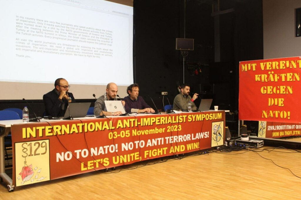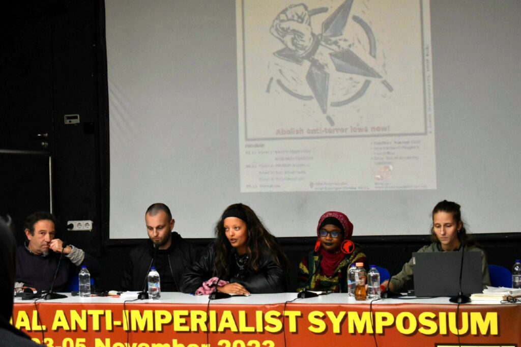 Η Αλεξάνδρα Ματαμόρος, δικηγόρος του μουσικού Πάμπλο Χασέλ, που βρίσκεται στις φυλακές της Ισπανίας για προσβολή του βασιλιά, χαιρέτισε το συμπόσιο και έδωσε μήνυμα ενότητας. Ο Γκιουνάι Γκάγκ από το Διεθνές Γραφείο του Λαϊκού Νομικού Γραφείου ανέφερε πώς οι διακρατικές σχέσεις επηρεάζουν τις νομικές αποφάσεις. Ανέφερε τους παραλληλισμούς μεταξύ της φυλάκισης 3 επαναστατών στη Γερμανία βάσει των νόμων “129” και της δίκης 11 Τούρκων επαναστατών στην Ελλάδα. Αναφέρει ότι δεν είναι τυχαίο ότι συνέβη μετά τη συνάντηση Μητσοτάκη – Ερντογάν. «Η μεγαλύτερη απόδειξη της μεταβλητότητας της έννοιας της τρομοκρατίας στο σύστημα είναι οι γκιουλενιστές, με τους οποίους Το ΑΚΡ κυβέρνησε τη χώρα για χρόνια και μετά τους ανακήρυξαν τρομοκράτες και τους φυλάκισαν» προσέθεσε. «Πρέπει να σταματήσουμε να σκεφτόμαστε με τους δικούς τους όρους και να αγκαλιάσουμε τους δικούς μας. «Αυτό που αποκαλούν τρομοκρατία είναι στην πραγματικότητα ο αγώνας μας για ελευθερία» κατέληξε, επικαλούμενος τη μαρξιστική αντίληψη περί νόμου.