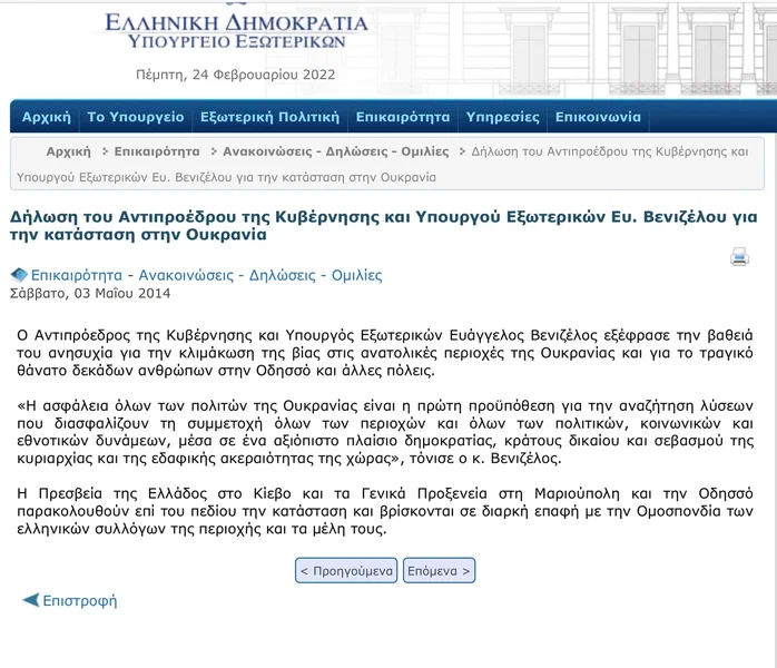 Εξηγεί πως το RT «δούλευε στη Γερμανία, όπου δεν δόθηκε βέβαια η άδεια για μετάδοση από το γερμανικό έδαφος, αλλά λειτουργούσε από άλλες χώρες. Στη Γαλλία πολλοί φίλοι μου έλεγαν ότι παρακολουθούσαν RT. Στην Ελλάδα, επίσης πολλοί το παρακολουθούσαν στην αγγλική ή τη γαλλική και άλλες γλώσσες. Έδειχναν μια άλλη άποψη για τα γεγονότα, αλλά ανέδειξαν και τα γεγονότα για τα οποία δεν τα δυτικά μέσα δεν γράφουν καθόλου. Λένε τα έκλεισαν λόγω της ρωσικής επιχείρησης στην Ουκρανία, αλλά γιατί γίνεται αυτή η επιχείρηση; Στην Ελλάδα και τη Δύση επί 8 χρόνια δεν έγραψαν τίποτα. Μιλάω με καλούς δημοσιογράφους και δεν ξέρουν πως οι Ουκρανοί εθνικιστές βομβάρδιζαν καθημερινά τις περιοχές της ανατολικής Ουκρανίας. Πάρα πολλοί δεν ξέρουν τι έγινε στην Οδησσό, όπου 50 άτομα κάηκαν ζωντανά (στο κτίριο των Συνδικάτων) από εθνικιστές και χούλιγκανς, όταν κανείς δεν έδειξε τίποτε». Υπενθύμισε πως «ο τότε υπ. Εξωτερικών της Ελλάδας Ευάγγελος Βενιζέλος εξέφρασε απλώς τη βαθιά του ανησυχία. Ούτε καταδίκασε, ούτε δήλωσε ότι είναι απαράδεκτο, απλώς ότι ανησυχεί. Ο κ. Βενιζέλος ήταν ο πρώτος υπ. Εξωτερικών της Ευρώπης που πήγε στην Ουκρανία για να νομιμοποιήσει το νέο φασιστικό καθεστώς στις 2 Μαρτίου 2014. Δέκα μέρες μετά το πραξικόπημα, στο οποίο πήρε ενεργά μέρος και η Ελλάδα, καθώς η χώρα είχε την προεδρία της ΕΕ και το πραξικόπημα ήταν το αποτέλεσμα αυτής της προεδρίας».