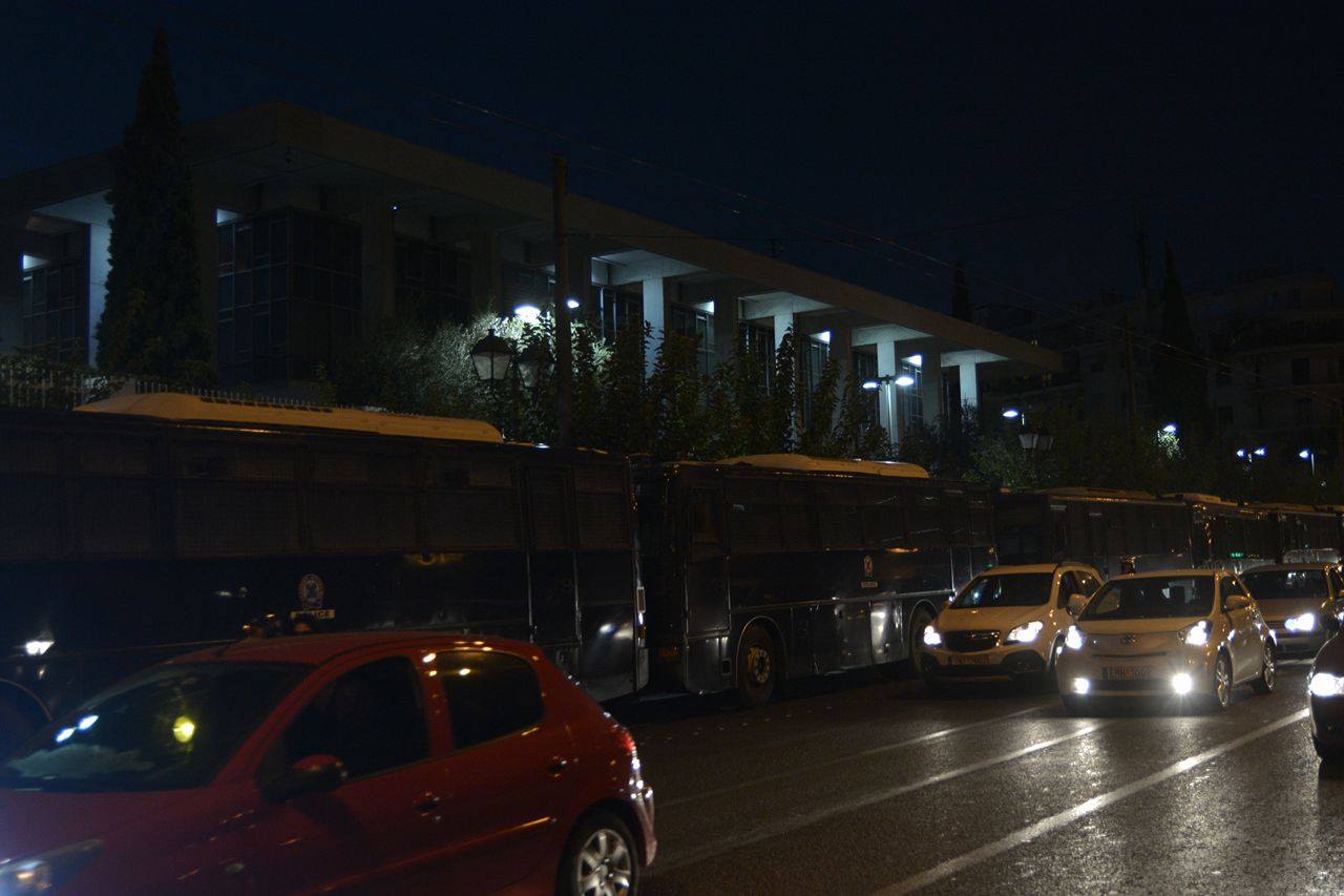Οι διαδηλωτές έκαναν στάση στα γραφεία της ΕΕ όπου φώναξαν για 5 λεπτά συνθήματα, ενώ στη συνέχεια κατευθύνθηκαν προς την αμερικανική πρεσβεία, που ήταν περικυκλωμενη από κλούβες των ΜΑΤ.