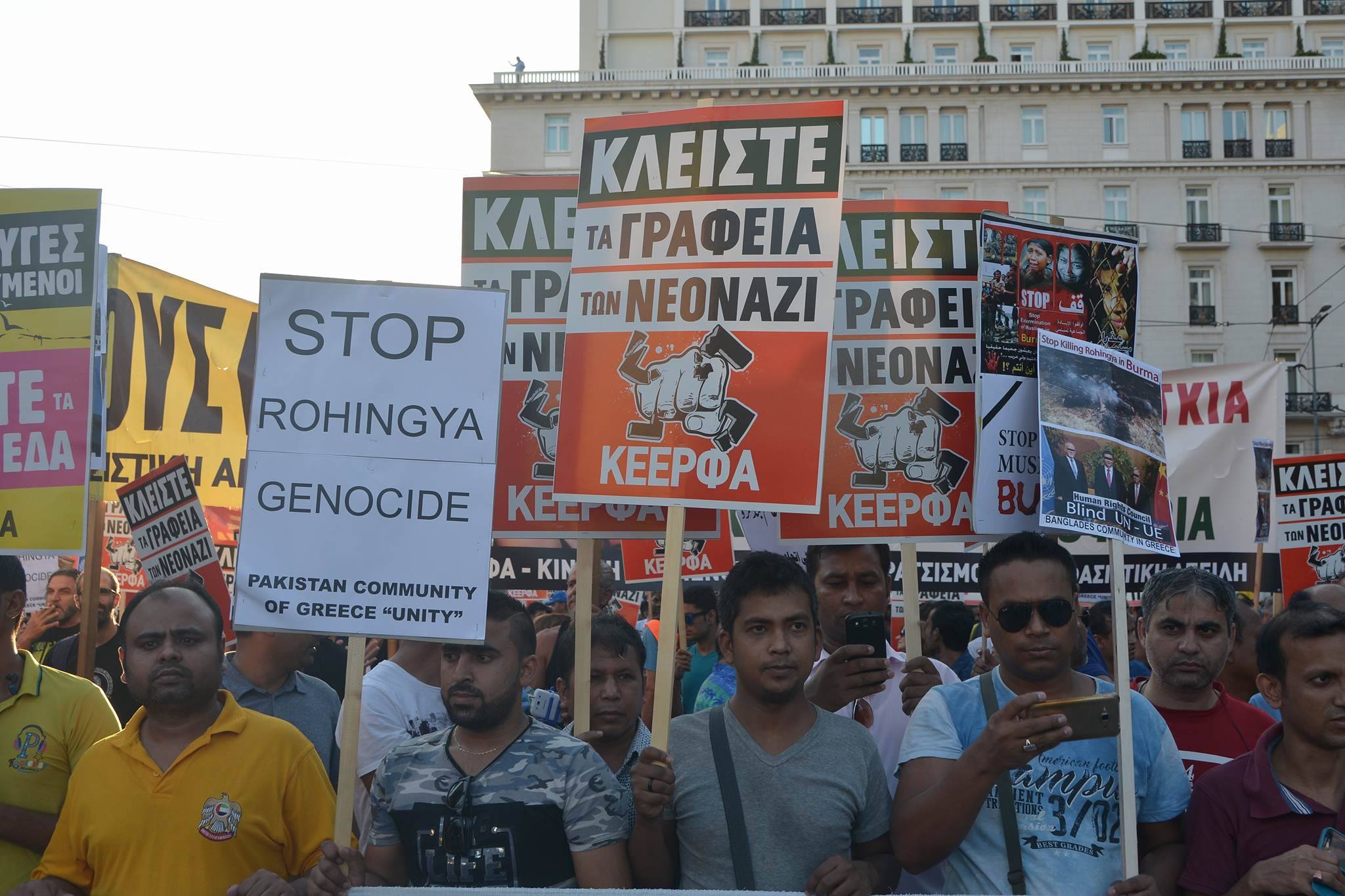 Αφορμή ήταν συμπλήρωση, τη Δευτέρα, τεσσάρων χρόνων από τη δολοφονία του Παύλου Φύσσα και σχεδόν ενός μήνα από τη δολοφονία της Χέδερ Χάγιερ στο Σάρλοτσβιλ των ΗΠΑ.Ανάμεσα στους διαδηλωτές ήταν και αρκετοί πρόσφυγες πρόσφυγες που διαμαρτύρονται για την σφαγή στους Ροχινγκια.
