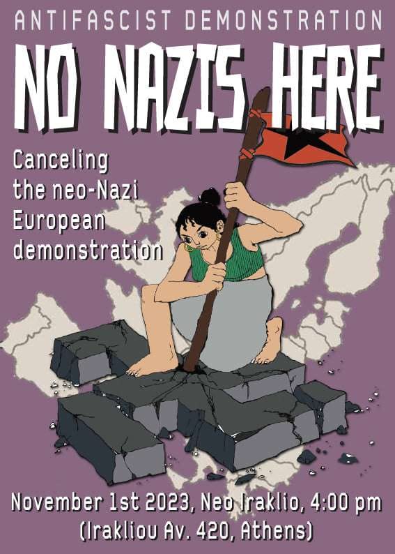 Όλες οι νεοφασιστικές οργανώσεις της Ελλάδας εξέδωσαν κάλεσμα για πανευρωπαϊκό νεοναζιστικό συλλαλητήριο στην Αθήνα, συγκεκριμένα στην περιοχή του Νέου Ηρακλείου, προγραμματισμένο για την Τετάρτη 1η Νοεμβρίου, στις 6μμ ώρα Ελλάδας.