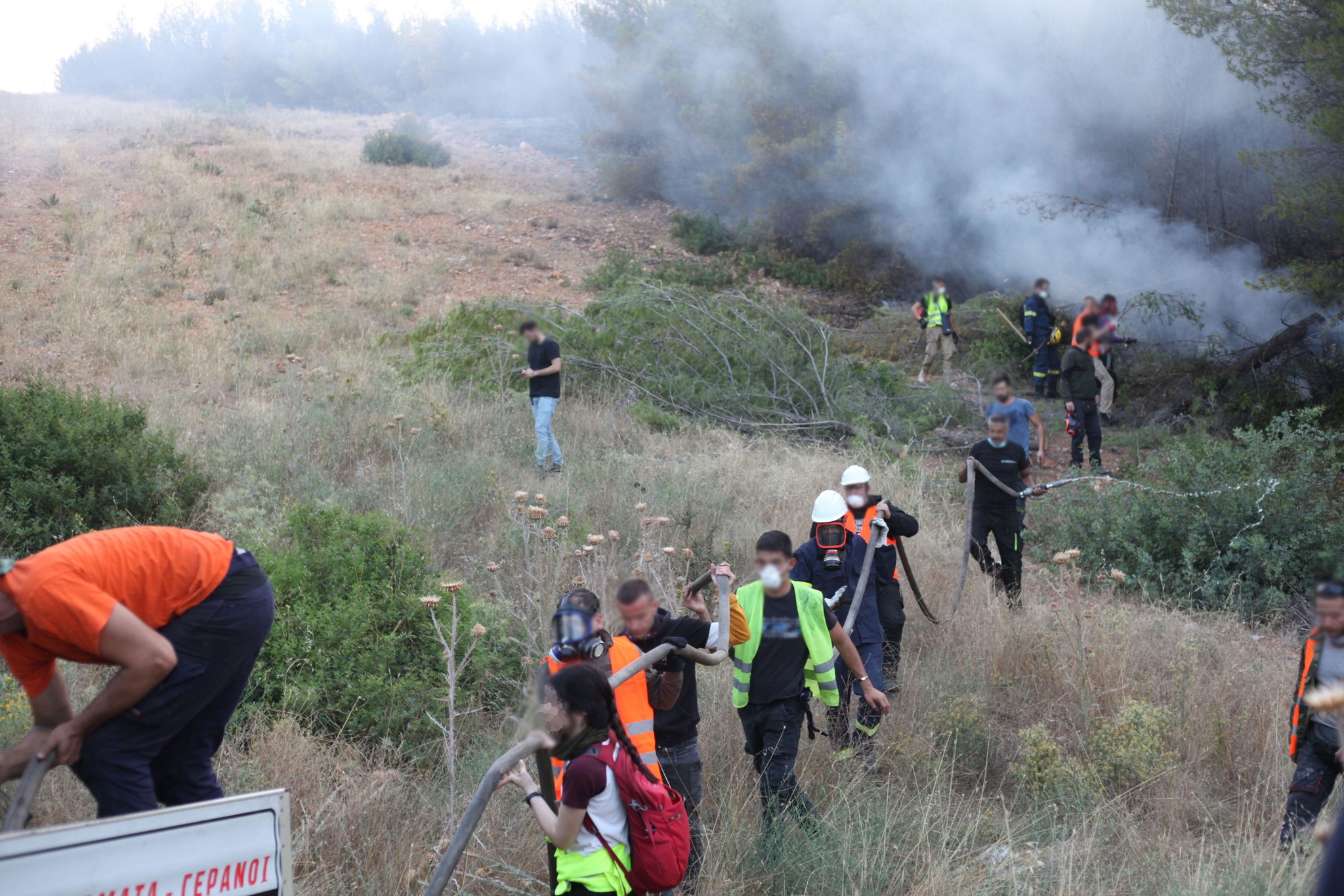 Δεν είναι τυχαίο πως τα πυροσβεστικά σώματα, με τα οποία βρισκόμασταν σε διαρκή επικοινωνία και υπό τον άμεσο συντονισμό τους- χωρίς να αποκρύψουμε την πολιτική μας ταυτότητα-, επιχειρούσαν με λιγοστές δυνάμεις και υποστελεχωμένα, σε αντίθεση με τις κρατικές-κατασταλτικές δυνάμεις που βρίσκονταν υπέρμετρες σε κάθε στενό μέσα στους δρόμους της ευρύτερης περιοχής της Μάνδρας και μέσα στο βουνό.