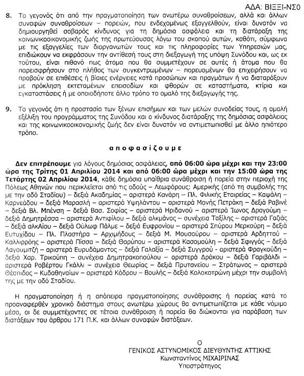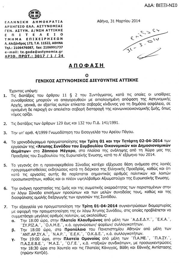 Αναλυτικά, στα γραφεία του ΠΑΜΕ θυροκολλήθηκε απόφαση απαγόρευσης των συγκεντρώσεων στο Σύνταγμα, σύμφωνα με ανακοίνωση.