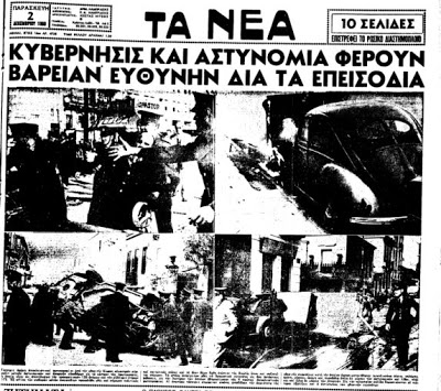 «Οι κομμουνισταί προεκάλεσαν χθες αιματηράς ταραχάς εις Αθήνας», έγραφε στις 2/12 η Καθημερινή. «Ουδεμία επιτρέπεται αμφιβολία ότι αι σκηναί υπεκινήθηκαν και οργανώθησαν υπό των κομμουνιστών, οι οποίοι έρριψαν εις την ‘μάχην’ επίλεκτα στελέχη των.» «Τα αιματηρά γεγονότα», διάβαζε αντίστοιχα ο τίτλος του ρεπορτάζ της Βραδυνής, «είχον προετοιμασθή υπό των ερυθρών. Ομάδες του σκληρού πυρήνος ενήργησαν αλλεπάλληλους επιθέσεις κατά αστυνομικών. Αφήρεσαν και τα περίστροφα τραυματιών.» «Πρόκειται περί καθαρώς κομμουνιστικής προκλήσεως», μετέδιδε από τη μεριά του ο ραδιοσταθμός της Θεσσαλονίκης, «αποσκοπούσα εις την δημιουργία χάους, εις εφαρμογήν γενικότερου σχεδίου κινητοποιήσεως των επαναστατικών δυνάμεων της διεθνούς μονάδος κρούσεως… Με τις αιματηρές συγκρούσεις των Αθηνών, ξαναζωντανεύουν στη μνήμη όλων στιγμές φρίκης [σ.σ. αναφέρεται στο Δεκέμβρη του 1944]…Υπάρχουν δυστυχώς αφελείς που πίπτουν θύματα της κομμουνιστικής δημαγωγίας.»