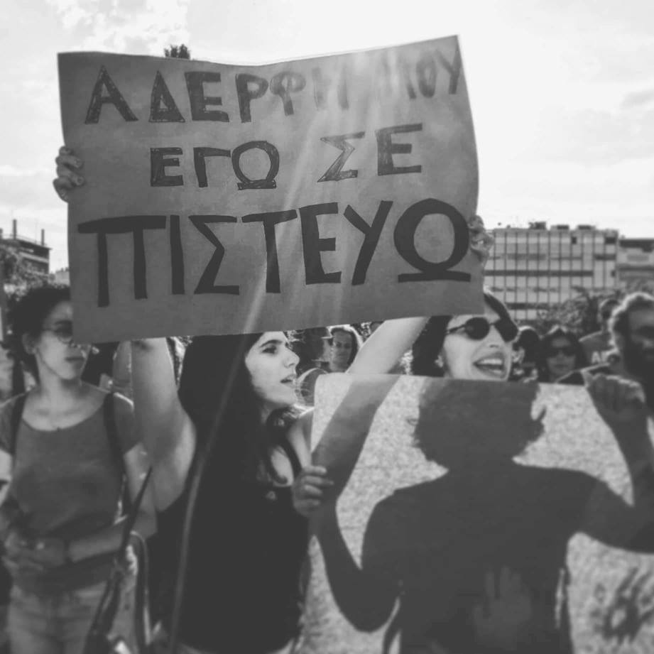 Δε θα σταματήσουμε στιγμή να αγωνιζόμαστε ενάντια στην κουλτούρα βιασμού, ενάντια σε κάθετι που συνθλίβει την επιθυμία μας και θέτει σε κίνδυνο τις ζωές μας. Δε θα σταματήσουμε ποτέ να φωνάζουμε «εγώ αδερφή μου σε πιστεύω»
