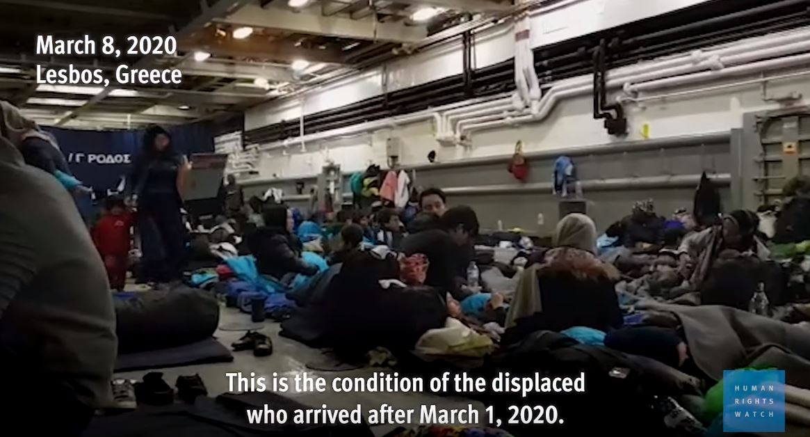Η απόφαση της Ελλάδας να κρατήσει περισσότερα από 450 άτομα σε ένα σε πλοίο του Πολεμικού Ναυτικού και να τους αρνηθεί να υποβάλουν αιτήσεις ασύλου παραβιάζει κατάφωρα το διεθνές και ευρωπαϊκό δίκαιο, επισημαίνει το Human Rights Watch. «Η ενέργεια μπορεί να ισοδυναμεί με αυθαίρετη στέρηση της ελευθερίας» σημειώνεται.