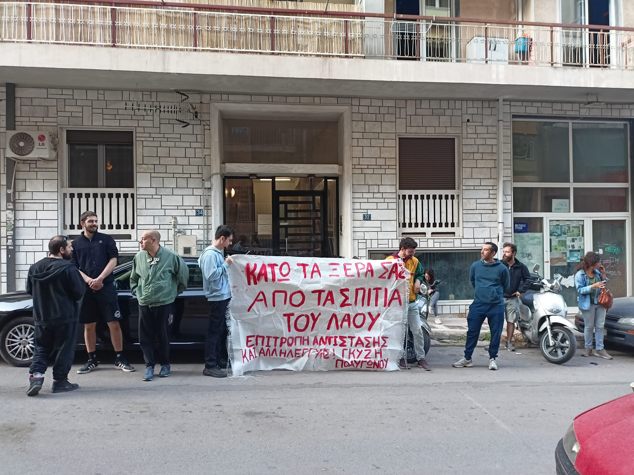 Ταυτόχρονα , ολιγομελής Επιτροπή από την Επιτροπή Αντίστασης και Αλληλεγγύης Γκύζη Πολυγώνου και από την Ενωτική Πρωτοβουλία κατά των πλειστηριασμών επικοινώνησε με το κοράκι που έχει αρπάξει τα δύο σπίτια της οικογένειας.