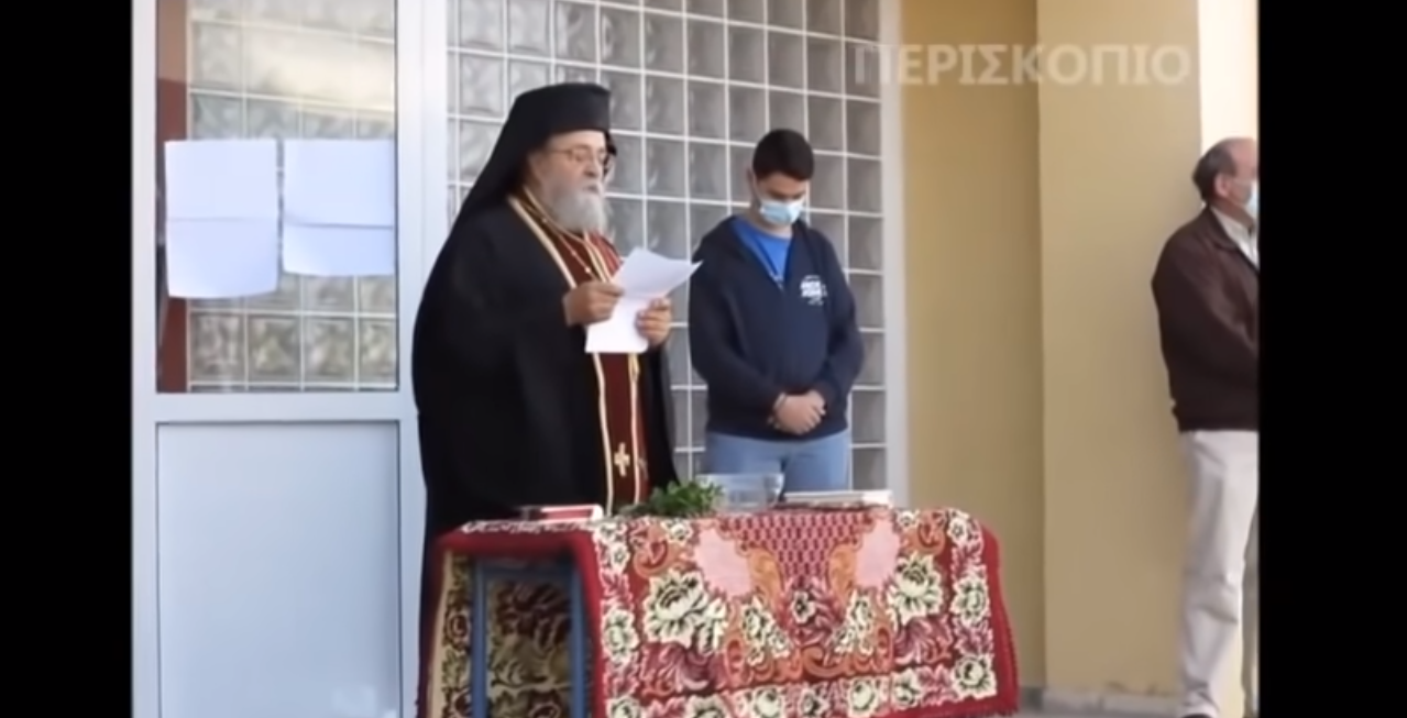 «Οι άρχοντες του τόπου φιλήσανε τον σταυρό χωρίς μάσκα και εσείς θα μου κάμετε επεισόδιο εδώ την ώρα του αγιασμού. Και να μου απαγορεύετε να μπω μέσα στις τάξεις επειδή δε φοράω μάσκα. Να κρατάω τον σταυρό του Χριστού και να φοράω μάσκα; Ντροπή σας.…» ανέφερε εμφανώς ενοχλημένος ο αρχιμανδρίτης.