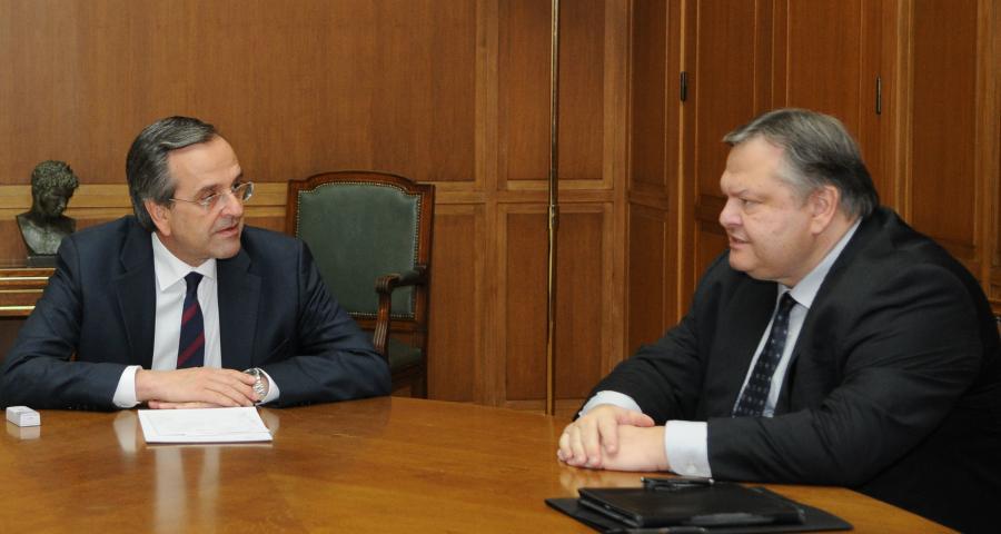 Ο πρωθυπουργός Αντώνης Σαμαράς και ο αντιπρόεδρος της κυβέρνησης και πρόεδρος του ΠΑΣΟΚ Ευάγγελος Βενιζέλος συναντώνται το μεσημέρι στο Μέγαρο Μαξίμου.