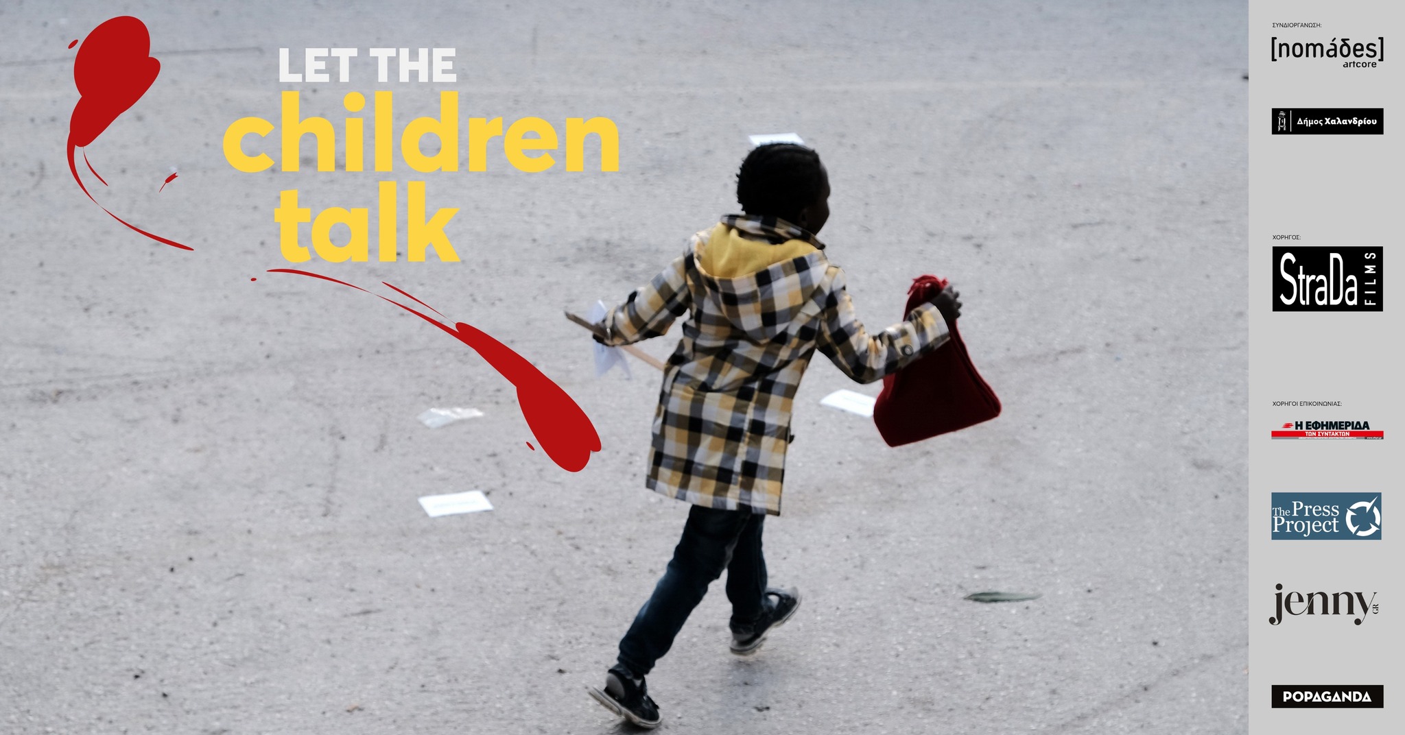 Με τις φωτογραφίες του Μάριου Λώλου, συνομιλεί η εικαστική in situ εγκατάσταση, της Μαρίας Καραθάνου, που μαζί με τα ηχητικά τοπία του Μάριου Τσάγκαρη, μεταβάλλεται και μεταβάλλει τον περιβάλλοντα χώρο. Τα πρόσωπα των παιδιών εναλλάσσονται με τα βίντεο του Ζαφείρη Χαϊτίδη και της Σοφίας Χατζηλάμπρου.