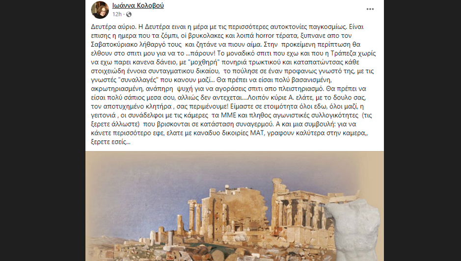 Αναλυτικά η ανάρτηση της Ιωάννας Κολοβού: