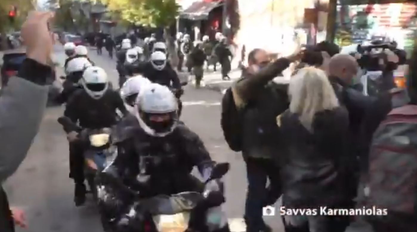 «Η στιγμή που οι αστυνομικοί της ΔΡΑΣΗ πέφτουν πάνω σε δημοσιογράφους στην πλατεία Εξαρχείων και κυνηγούν διαδηλωτές στην Τσαμαδού».
